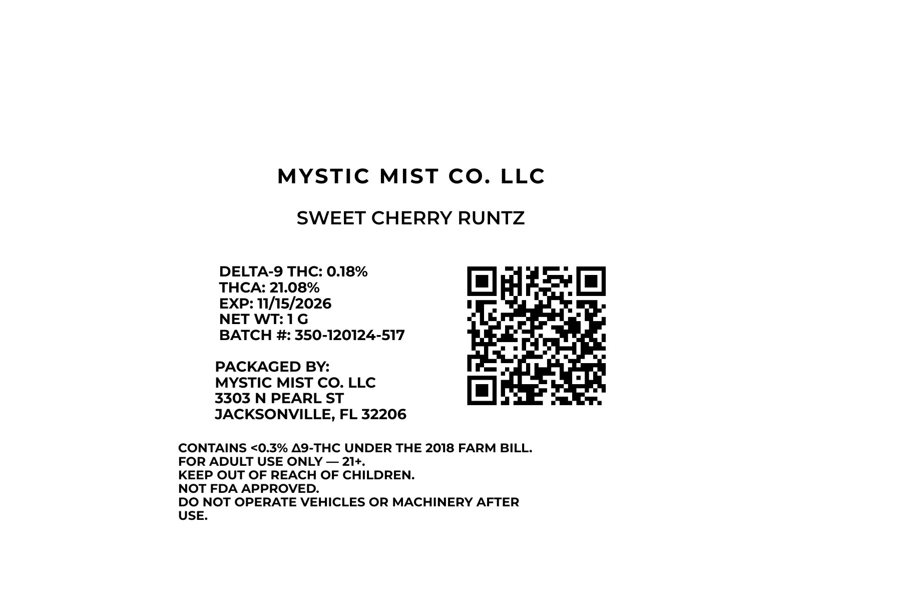 adult use only – 21+. Keep out of reach of children. No medical claims are made.